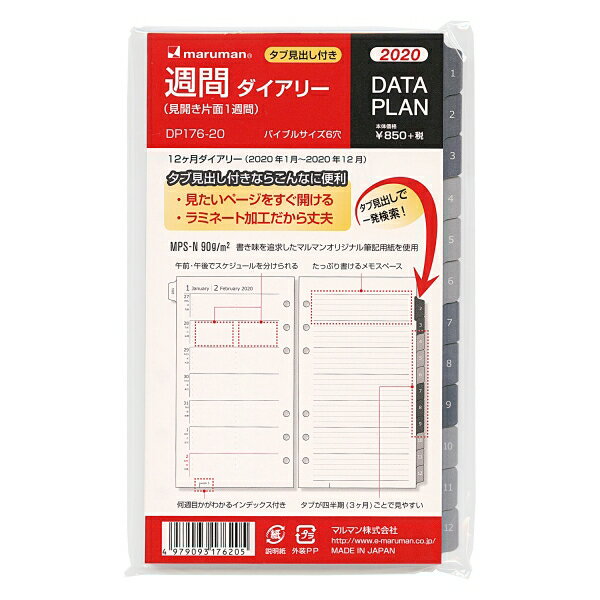 1.マルマン「バイブルサイズ 週間ホリゾンタル データプラン システム手帳リフィル」